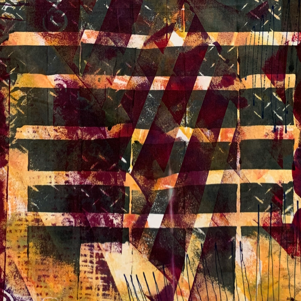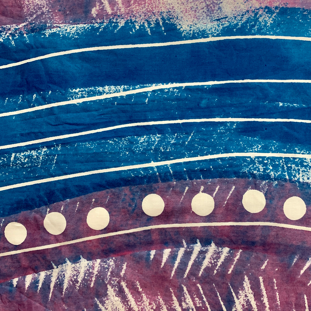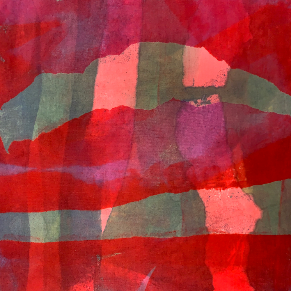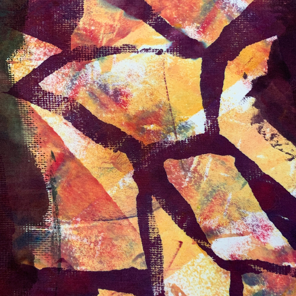 Ann shows using various masking techniques from simple to complex. She discusses how to improve your results by using appropriate fabrics and alternate tools and methods of application. With practice and experimentation you can learn to be spontaneous with decisions about where and when to apply and remove the masking materials. Colors: boysenberry, royal blue, gold, scarlet.